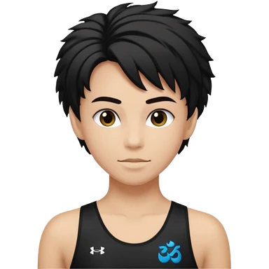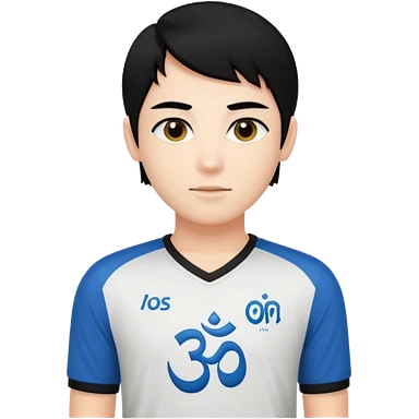 Un personnage qui a les cheveux noirs dans le côté et qui porte un maillot de l’om emoji
