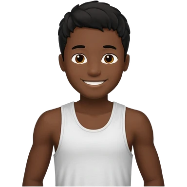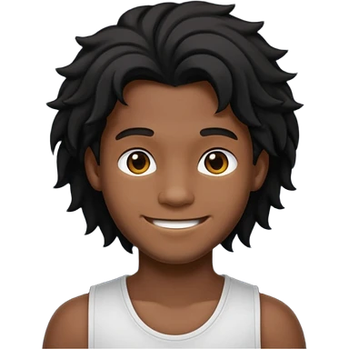 Un garçon qui a des locks noir il sourit c’est un renoi il a un débardeur emoji