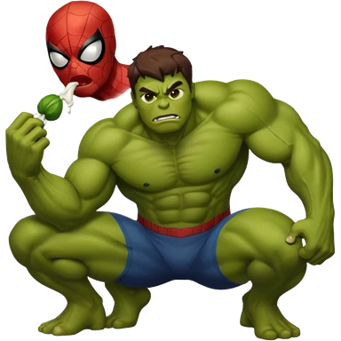 Spider man pooping and hulk licking the poop emoji