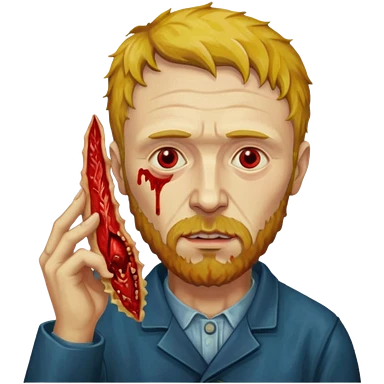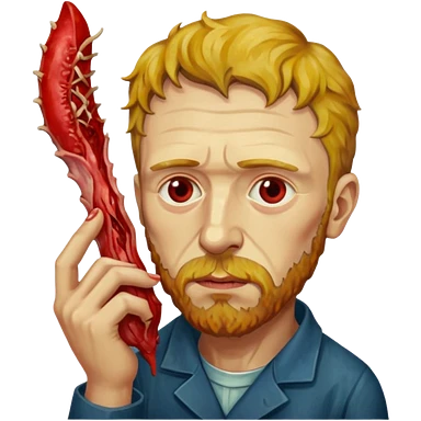 an gogh paints on a canvas. On his right ear he has a bandage emoji