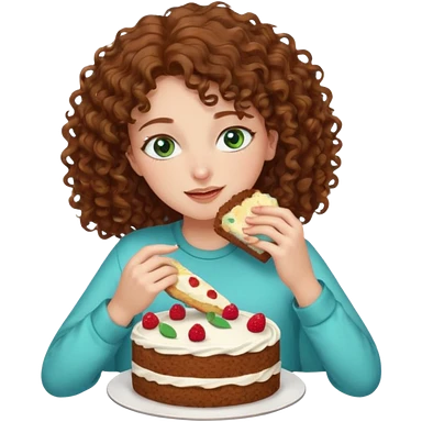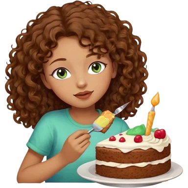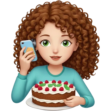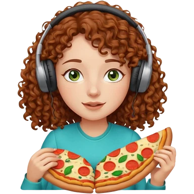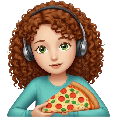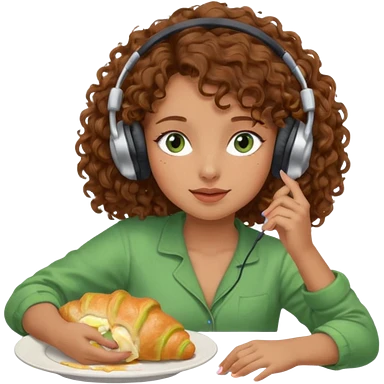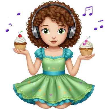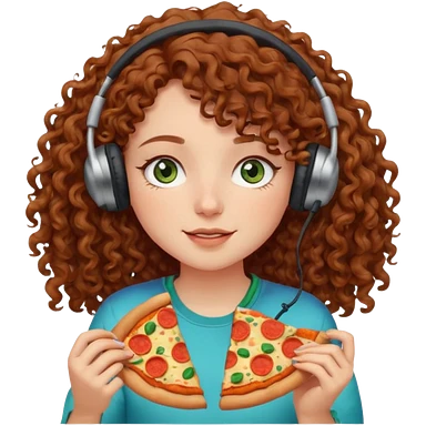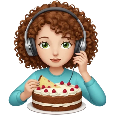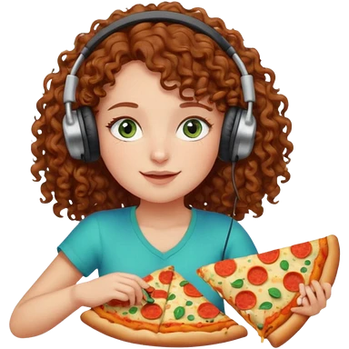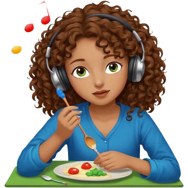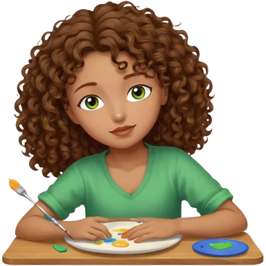 Brown curly hair girl blue green eyes painting sleeping eating dancing listening to misic emoji