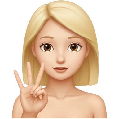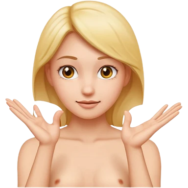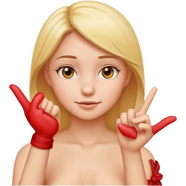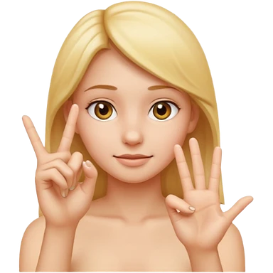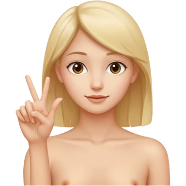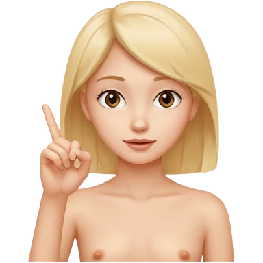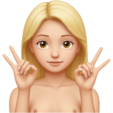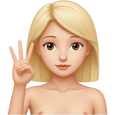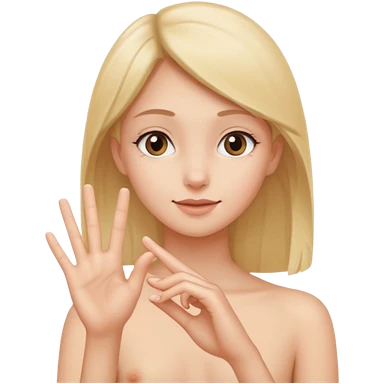 girl naked showing a small gesture: thumb and middle finger touching, other fingers closed. emoji