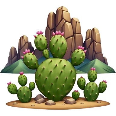 prickly pear cactus and saguaro cactus with mountains in background emoji