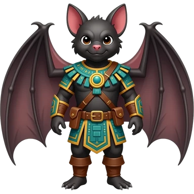 A bat dressed in medieval mayan ranger outfit. Full body. No wings. Without wings emoji