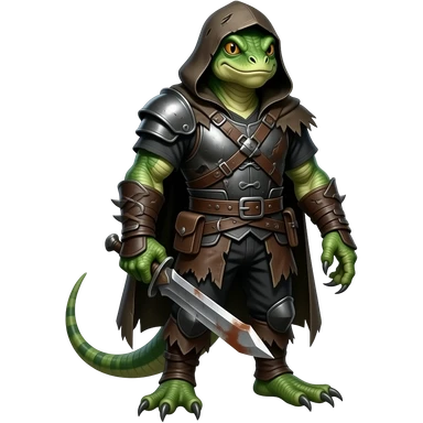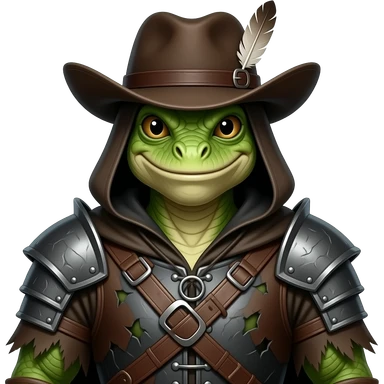 A lizard-man dressed in medieval outlaw outfit. Full body emoji