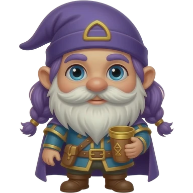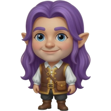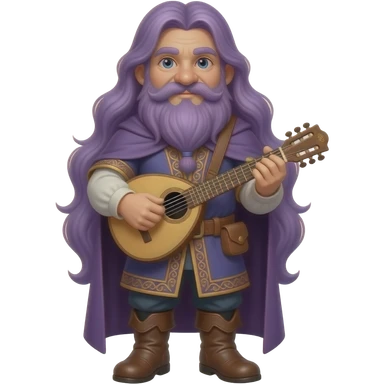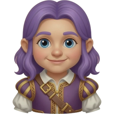 A gnome dressed in medieval bard outfit . Purple hair emoji