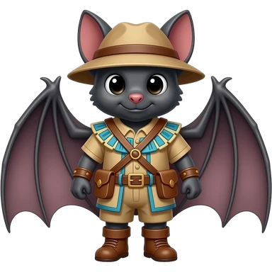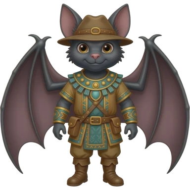 A bat dressed in medieval mayan explorer outfit. Full body. No wings. Without wings emoji