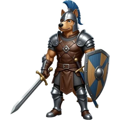 A dog-man dressed in medieval warrior outfit. Full body emoji