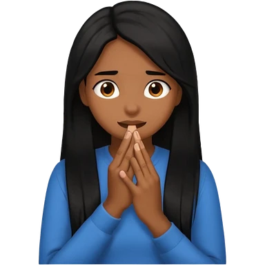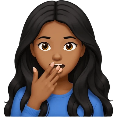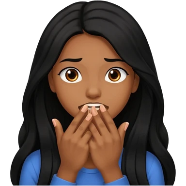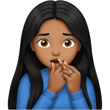 biting nails in flirtatious and shy way, brown skin, long black hair emoji