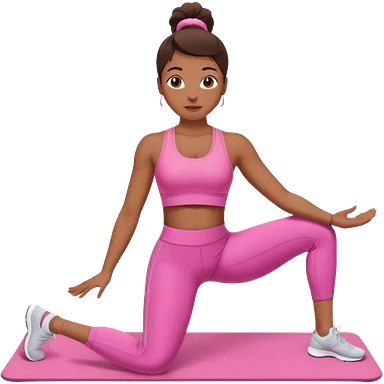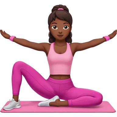 dark-skinned woman doing Pilates in pink sportswear emoji