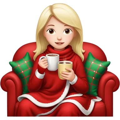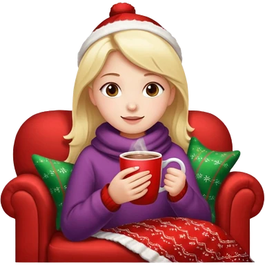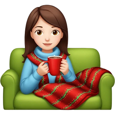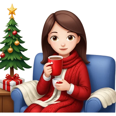 Girl celebrate christmas on the sofa, with hot chocolate, warm sock, warm blanket emoji