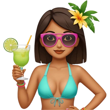 Indian girl on beach with margarita emoji