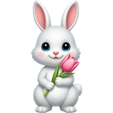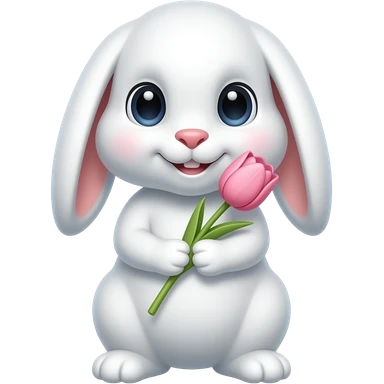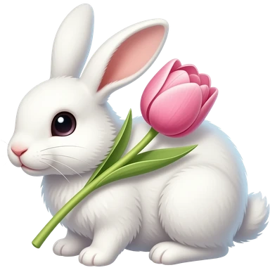 нарисуй белого кролика который держит тюльпан розовый в лапах кролик должен быть с опущенными ушами emoji