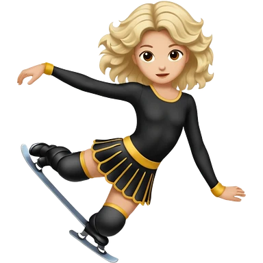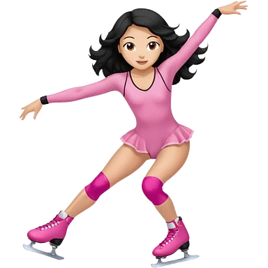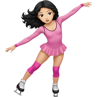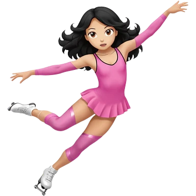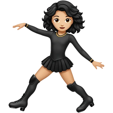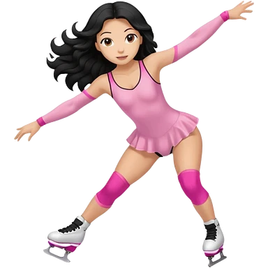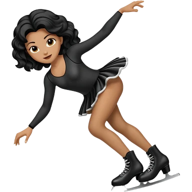 una patinadora con pelo negro largo y ondulado en las puntas con un mallot muy bonito patinando emoji
