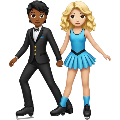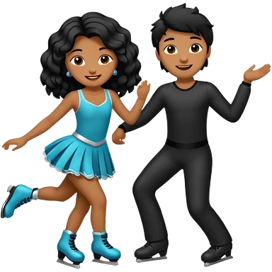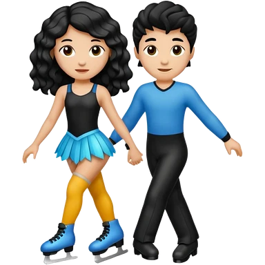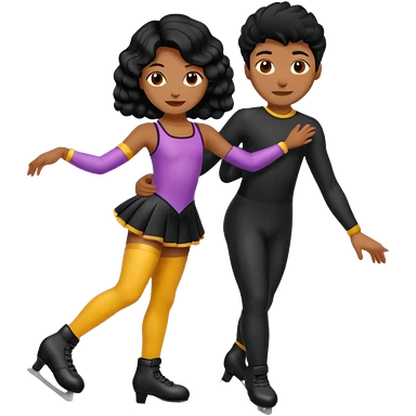 una patinadora con pelo negro largo y ondulado en las puntas con un mallot de color patinando en pareja emoji