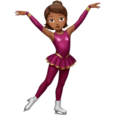 Una patinadora de 12 años y es morena de pelo y lleva un mallott granate con brillos y esta patinando emoji
