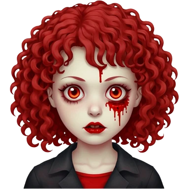 Faça um emoji de zumbi mulher, cabelo cacheado e franja cacheada, deixe ele com a estética meio gothic emoji