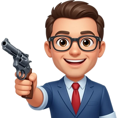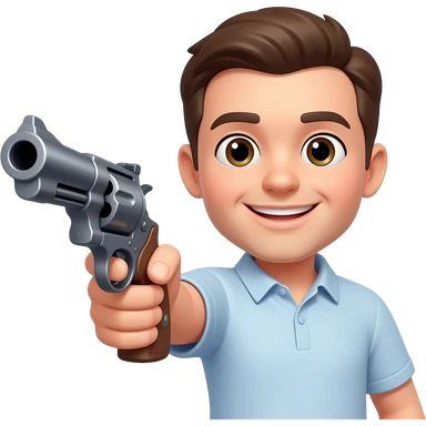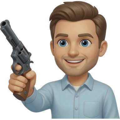 A happy emoji with revolver emoji