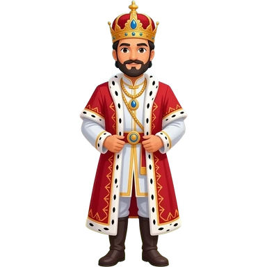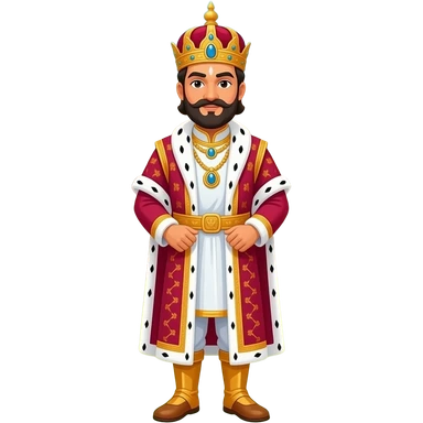 Bangla fairy tale king, royal costume, standing in palace garden, cartoon style, 2D animation, bright colors emoji