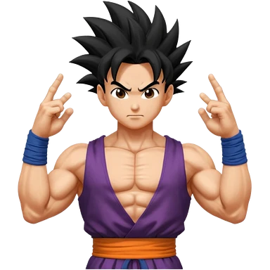 dragon ball gohan with his two fingers and arms facing right to fusion with trunks emoji