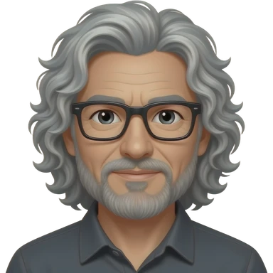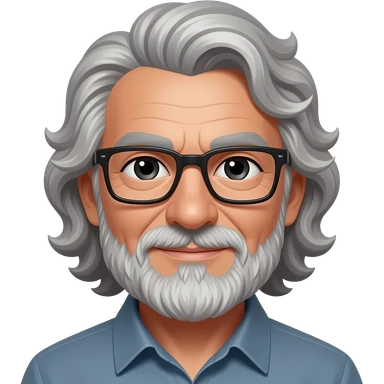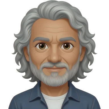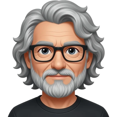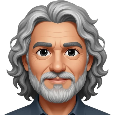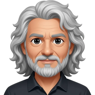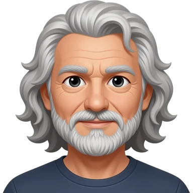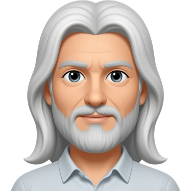 عيناه اسود رجل شعره طويل ابيض في رمادي له لحيه ة رمادي emoji