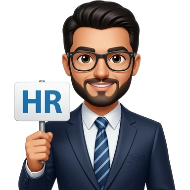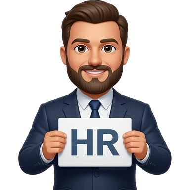 رجل قمحي اللون وله لحية يرتدي بدلة ويحمل علامة H R emoji