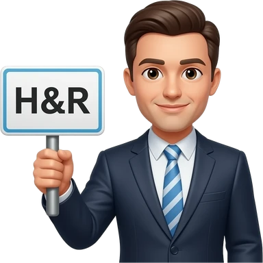 رجل يرتدي بدلة ويحمل علامة H R emoji