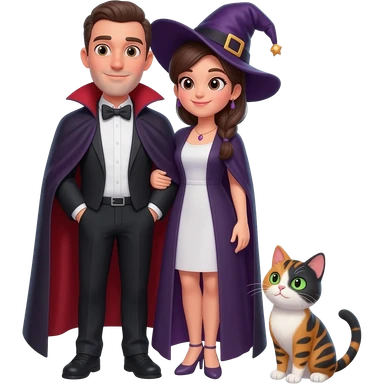magician couple and their pet cat emoji