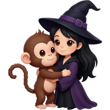 Monito dando aun abrazo por el cuello a una brujita de pelo negro emoji