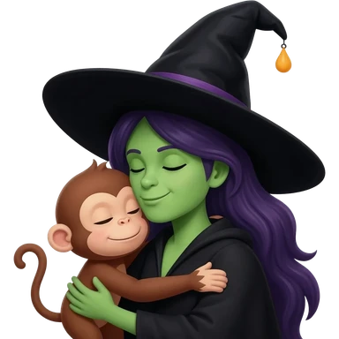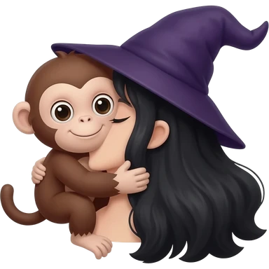 Monito dando un super abrazo a unaBruja de pelo negro emoji