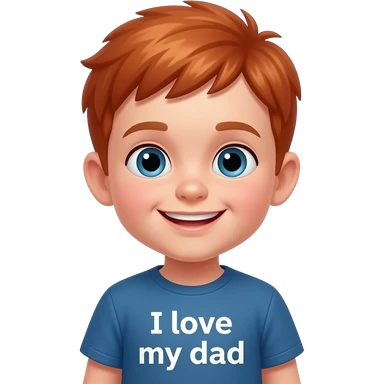 a 5 year old boy with red hair smirking with a shirt that says I love my dad emoji