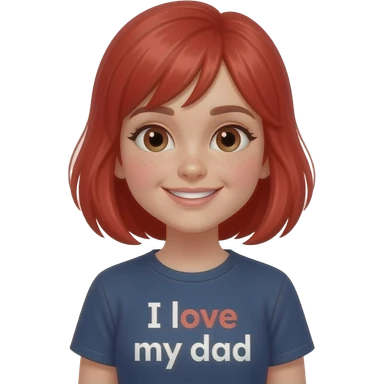 a 13 year old girl with red hair smirking with a shirt that says I love my dad emoji