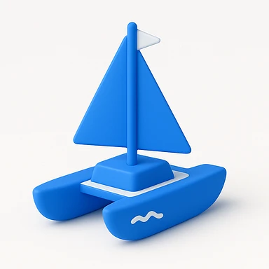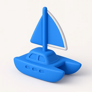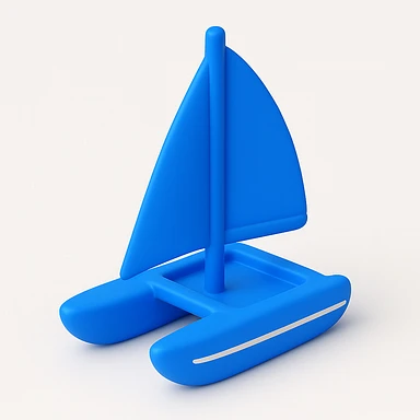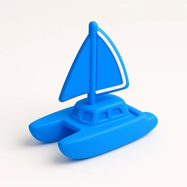 A catamaran with a white background. No wording or lettering on the boat. emoji