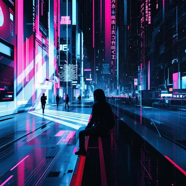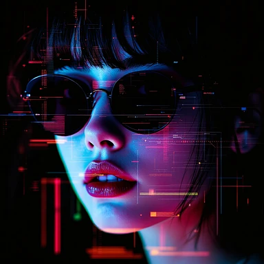 cyberwave glitch digital microscanner projection of a portrait of an anime girl wearing dark shades, cyber hologram, abstract, experimental glitchy brutalist graphicwave emoji