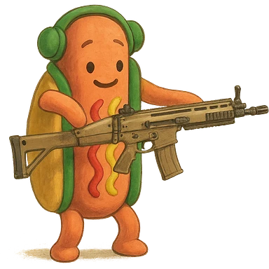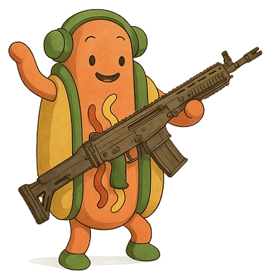 The tiktok dancing hotdog, except he has a scar12 battle rifle emoji