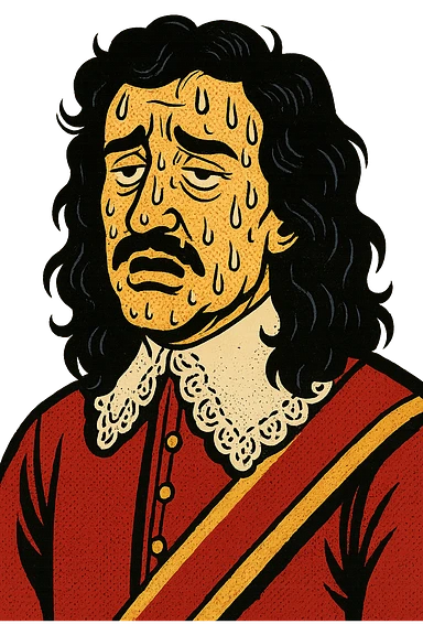 England's King Charles II looking like his has a fever and sweating a lot emoji