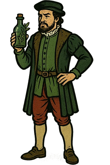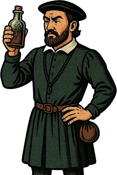 A male doctor from tudor england with his herbal medicine bottle emoji