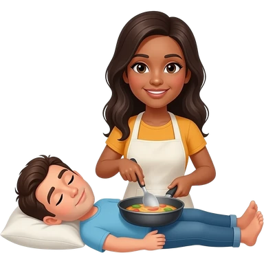 Una mujer cocinando mientras el hombre está tumbado emoji