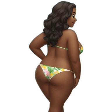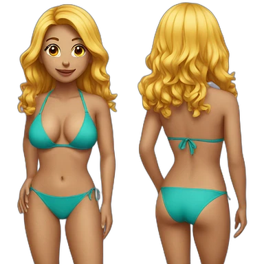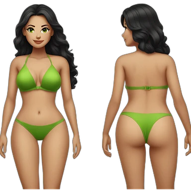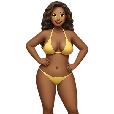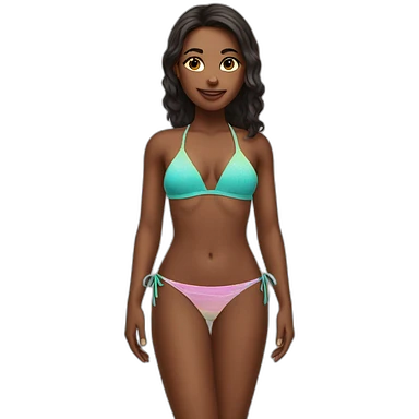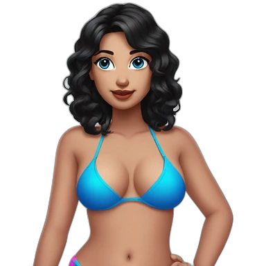 curvy girl in bikini blue eyes black hair pink nails emoji