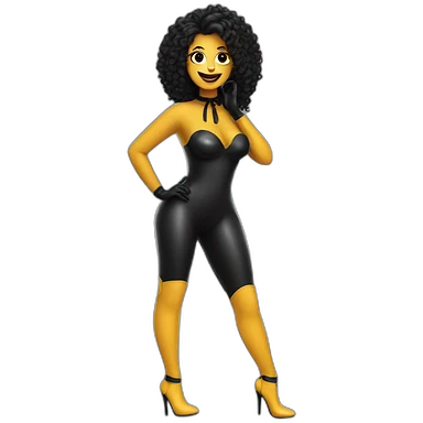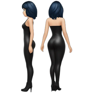 one curvy girl with blue eyes black hair in latex from behind emoji