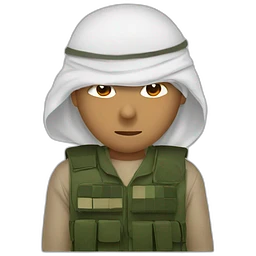 man masked with the Saudi Arabic red and white shemagh and wearing military clothing emoji
