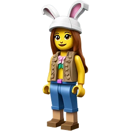 Lego toy girl whole body with rabbit hat and beggy jeans emoji