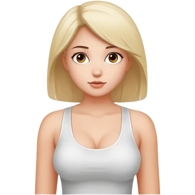 гола жінка з голими великими силіконовими грудьми (груди мають рівну форму напівшару). Видно дівчину повністю в весь зріст. В дівчини велиак пружна дупа і гарні полові губи. Також має біле довге волосся (нерівна зачиска). Дічина розсовує пальцями полові груби emoji