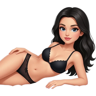 full bodyblack hair girl in lingerie on bed looking back at it while sticking butt out emoji