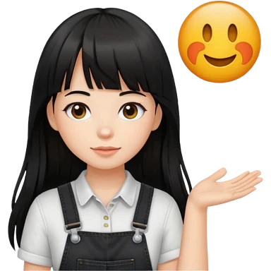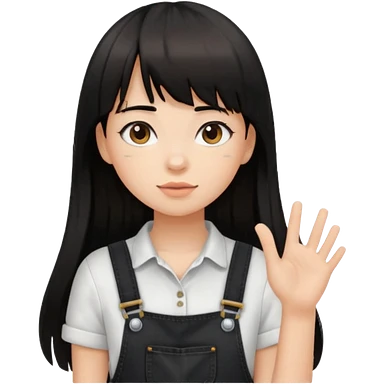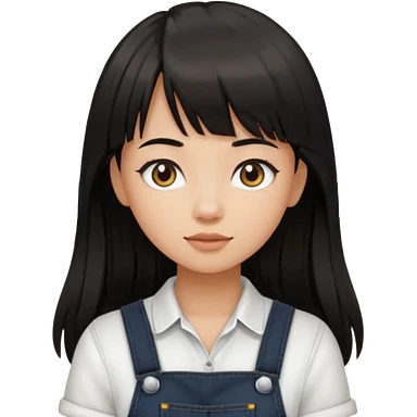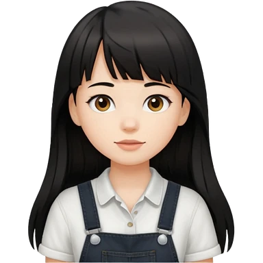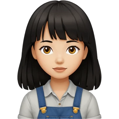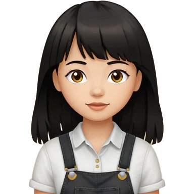 Make it a girl wil long hair like this and look like this she has brown ish black hair and if has bangs with black overalls and a white shirt she’s not asian emoji