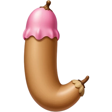 beige skin color and pink cylindrical shaft penis, erect, phallus shape, no face, shaped similar to peeled banana, with pink mushroom cap tip at one end emoji