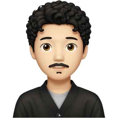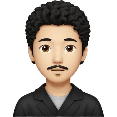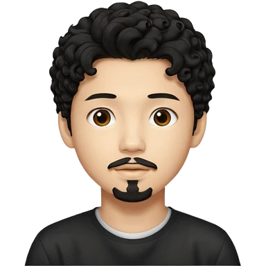 un ragazzo coreano di 18 anni con il pizzetto capelli ricci e lunghi sciolti neri emoji