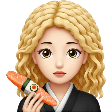 un coreano di 18 anni con sushi con il pizzetto capelli ricci e lunghi sciolti neri con un IQOS in mano emoji