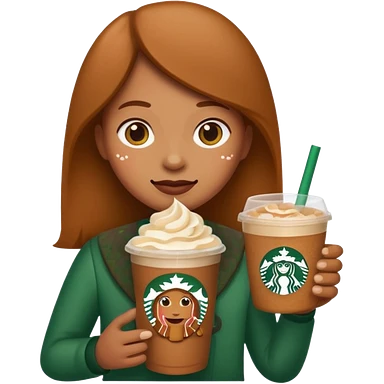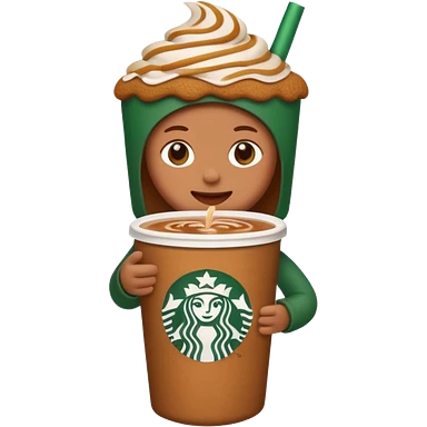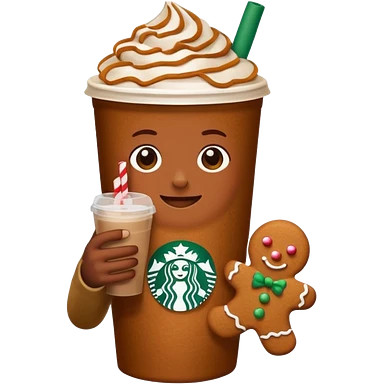 a plain emoji holding a gingerbread chai drink from Starbucks emoji