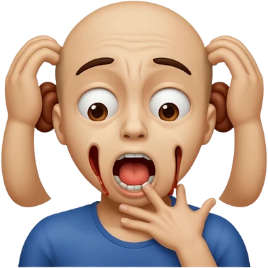 a bust of a person with both their hands around their neck with a face yelling emoji